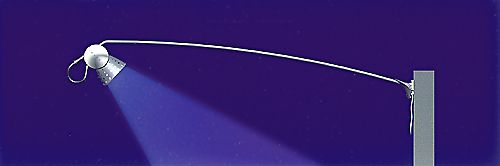 IMAGO® Picture light Series 210 Line voltage halogen picture light for GZ bulbs with dichroic reflector 220V / 75 W (for the US market 120 V / 75 W bulbs are available). No transformer needed. Lighthead can be clamped in any position to the lighting arm. Wall unit mounted with one screw only to any wall. Arm can be adjusted easily in its angle to the picture surface. Changing of the bulb is safe, fast and easy without any tools. Arm of stainless steel is 780 mm long, clamp parts are nickelplated, lamp shade polished aluminum, synthetic parts glassfiber reinforced in black. Cable 3000 mm long with Europlug (US version 3-prong plug). Comes in a shockproof styrofoam cassette with cardboard sleeve. Without bulb. ETL Certification No. 2000 766 (USA). Measurements: 1000 x 165 x 90 mm Weight: 0.880 kg